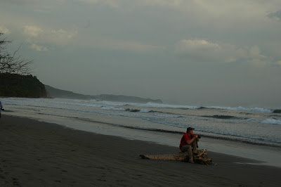 (photo by Sarah Rudeen)We headed out by boat to explore the spectacular stretch of coast, possibly the most beautiful and dramatic of coastline that I’ve ever seen (and I live in Oregon). Crashing waves batter sloping flat rocks and white sand beaches hide behind rocky-forested outcrops. Moving north along the coast of the wildlife refuge, we stopped in front of La Flor beach, one of a handful of beaches in the world that host the arribada, a mass nesting event of olive ridley sea turtles. My years of experience being quiet around turtles on nesting beaches went right out the window as I let out a yell as a small head popped out of the water not far from our boat. The turtle heard me and dropped right back into the water, but there were plenty more bobbing around.